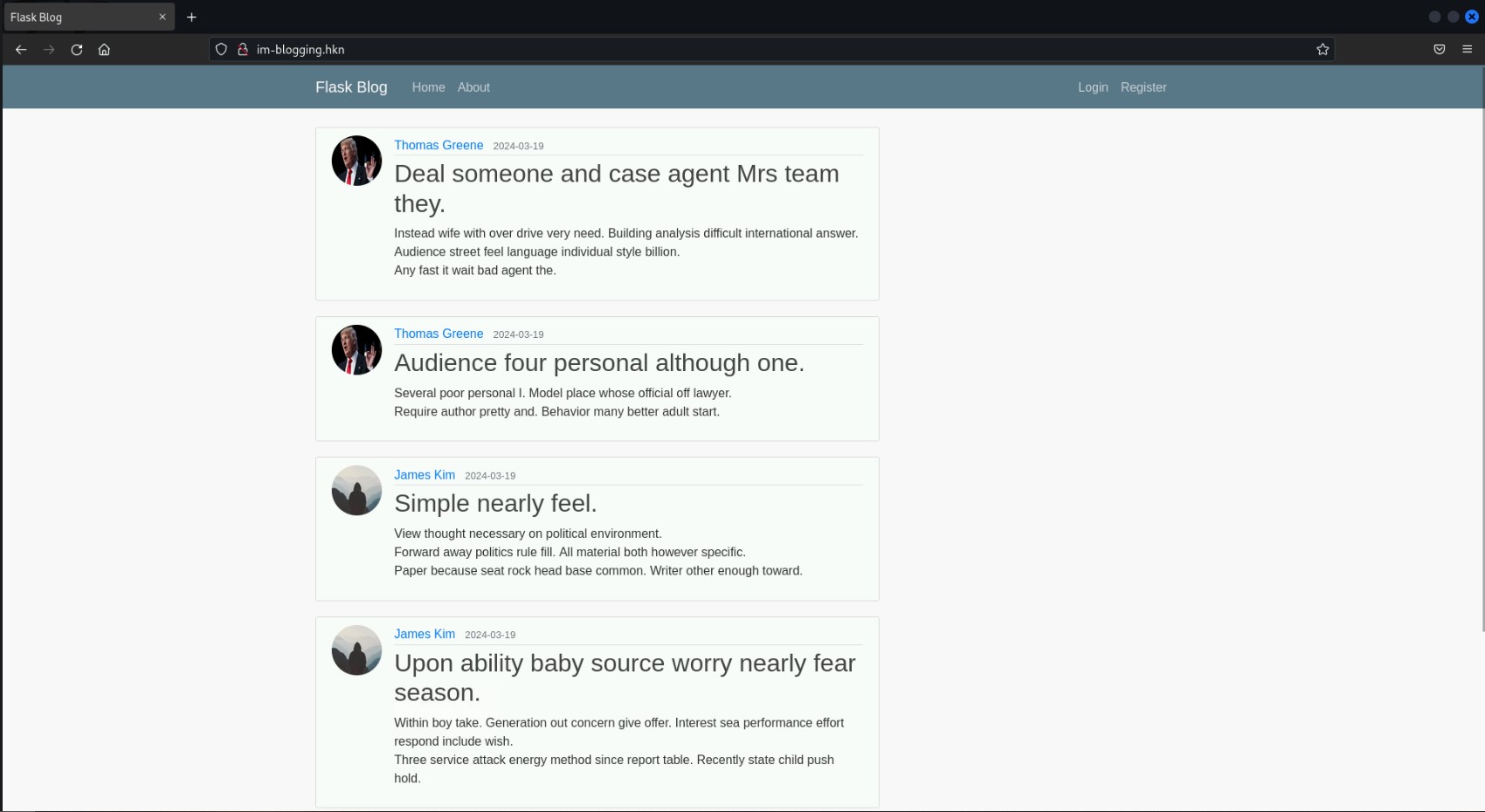 When you first load up the challenge and visit the website, you are greeted with the main blog page: